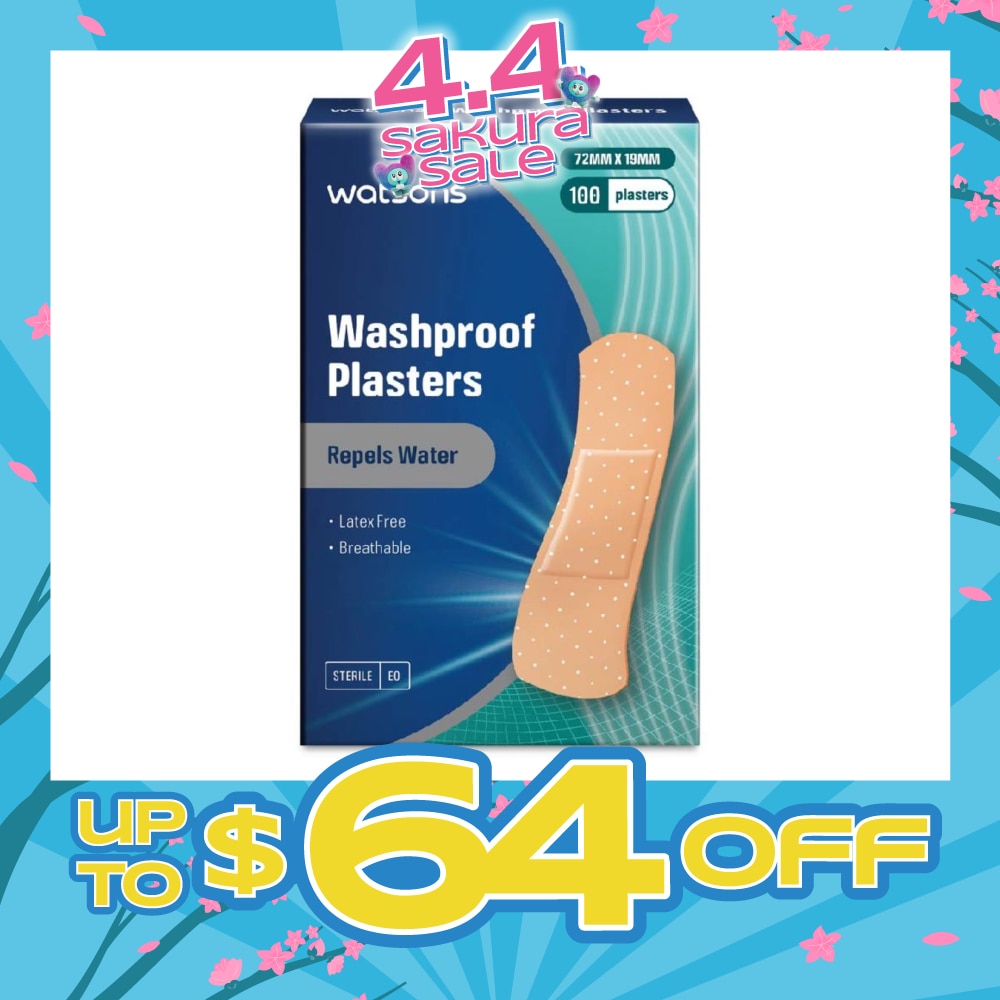 Watsons Washproof Sterile Plaster Breathable Latex Free (72mm x 19mm) 100 pieces