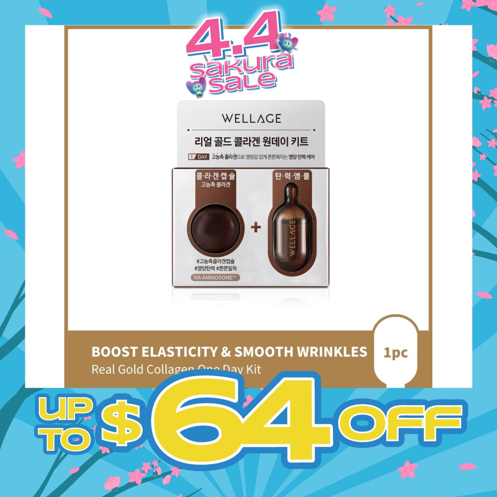 The Wellage Real Gold Collagen One Day Kit combines 24K gold and high-concentration collagen to visibly firm, smooth, and restore skin elasticity in just 7 days.