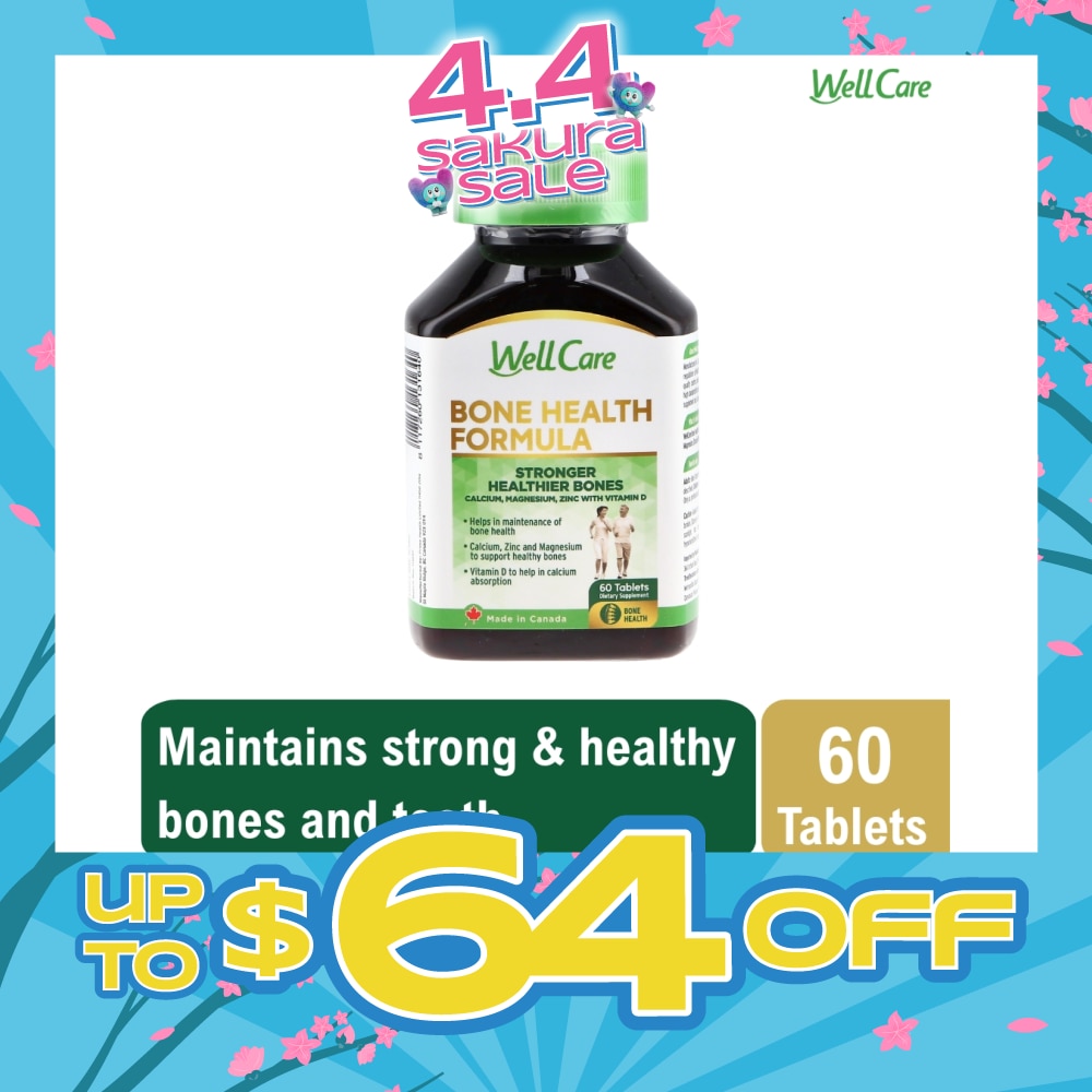 WellCare Bone Health Formula contains a unique combination of Calcium, Magnesium, Zinc and Vitamin D to support Stronger, Healthier Bones