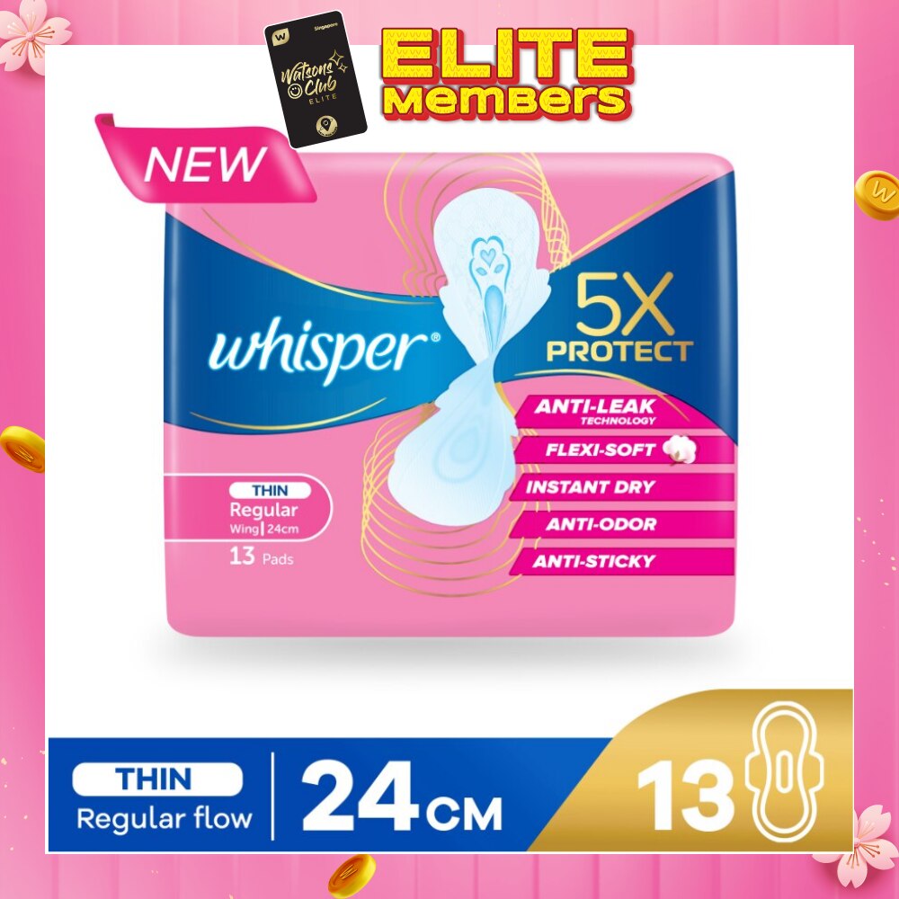 WHISPER 5x Protect Thin Regular Sanitary Pad Wings 24cm 13s