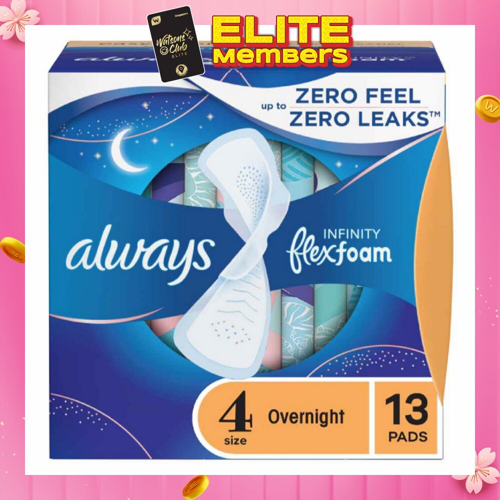 Say hello to the world's first foam pad with Always® Infinity™ by Whisper. Made with an ultra-light FlexFoam™ material, this form-fitting, revolutionary pad absorbs 10X its weight™ and molds to your body shape, so you barely feel it.