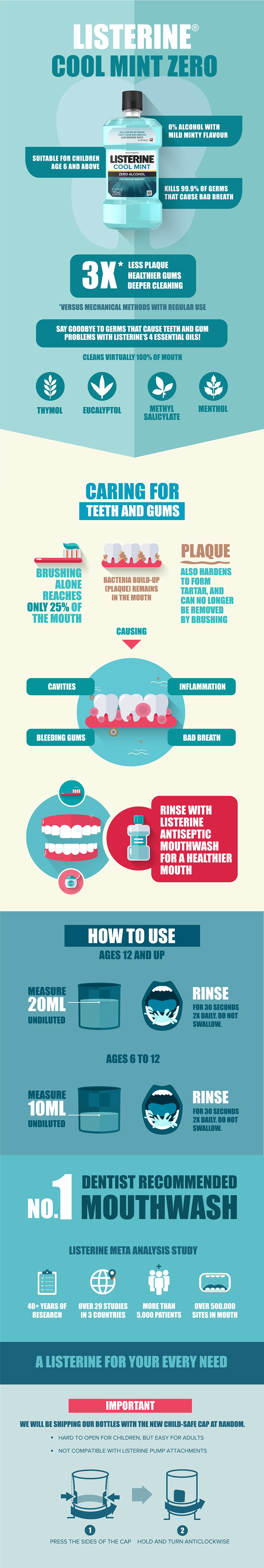 Rinse with 20mL undiluted Listerine each time, twice a day. Expel after rinsing for 30 seconds and do not swallow. No further rinse with water is required. Do not use in children under 6 years of age.