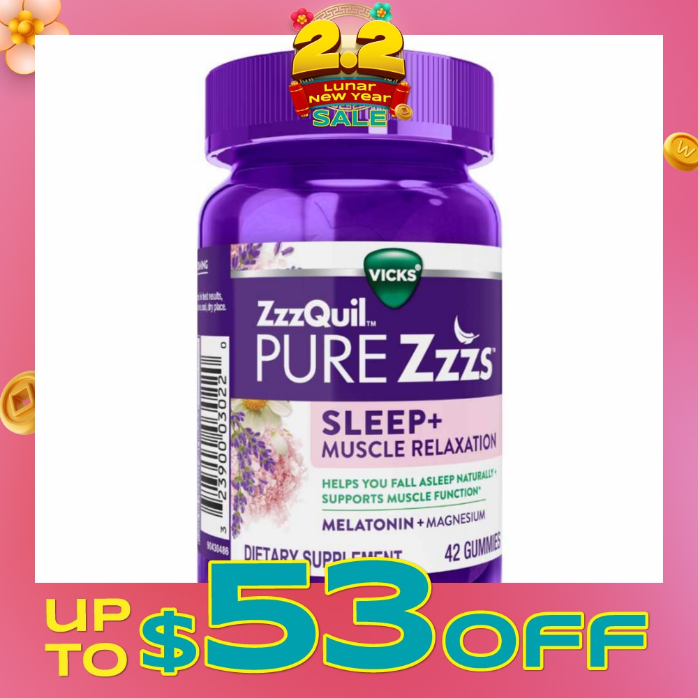 ZZZQUIL Pure Zzz's Sleep + Muscle Relaxation With Melatonin & Magnesium Gummy (To Helps Fall Asleep Naturally & Supports Muscle Function) 42s